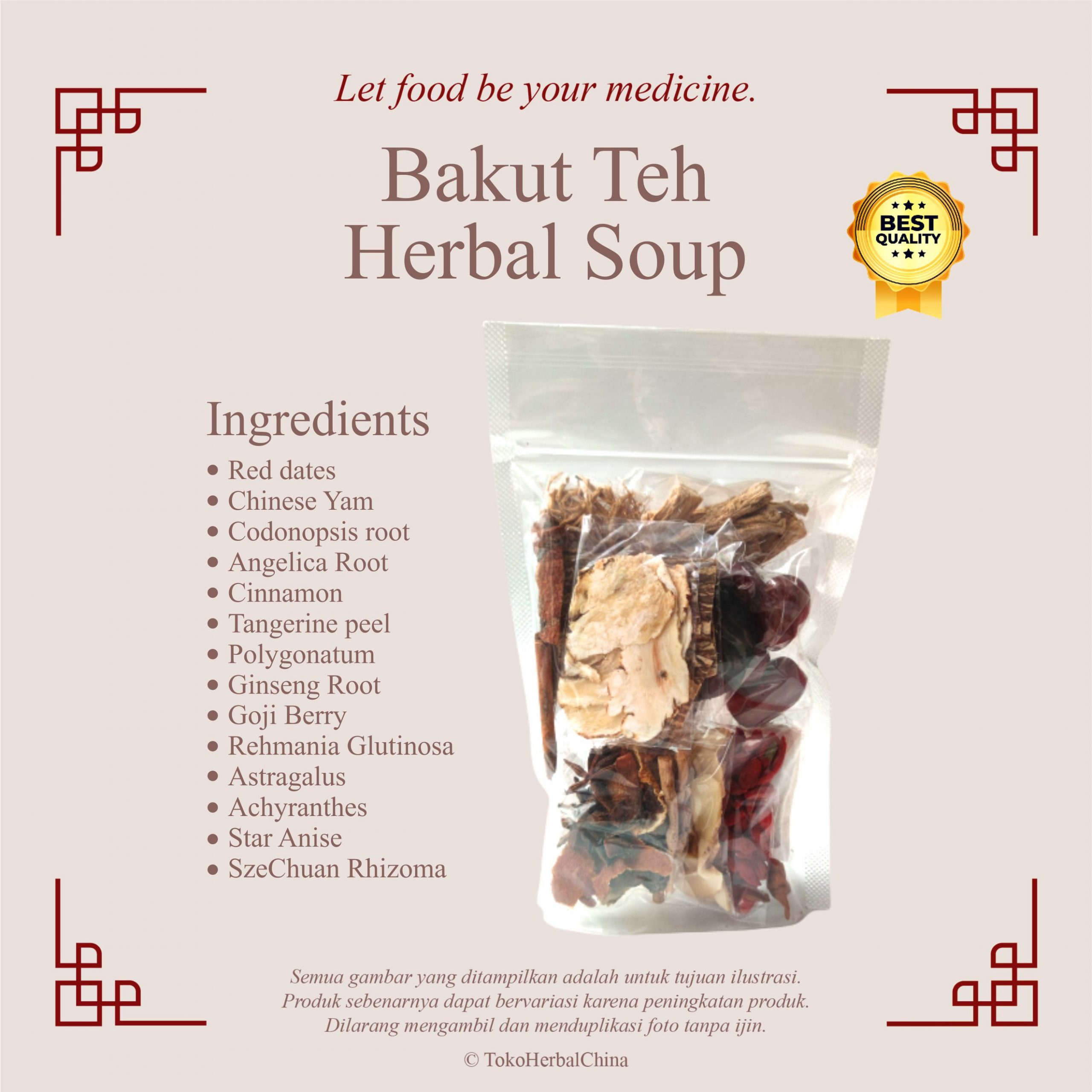 Masakan Bakut Teh sangat terkenal di Singapura dan Malaysia. Bakut Teh Malaysia ini memiliki rasa yang sangat khas dengan campuran beberapa macam herbal dan kuah akan berwarna coklat kehitaman. 1 Pack untuk 1 Kg Bakut (Iga).