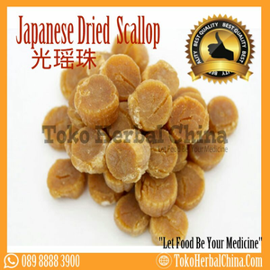 Scallop kering asli Jepang, di Asian Cuisine banyak di gunakan untuk soup, tumis sayuran, bubur ataupun nasi goreng, dan juga sebagai pengganti MSG alami untuk memberi rasa gurih pada makanan.